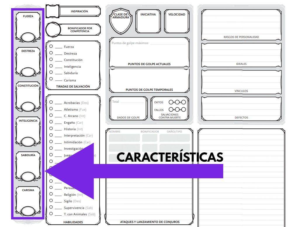 ¿DÓNDE ESTÁN SITUADAS LAS CARACTERÍSTICAS EN LA HOJA DE PERSONAJE?