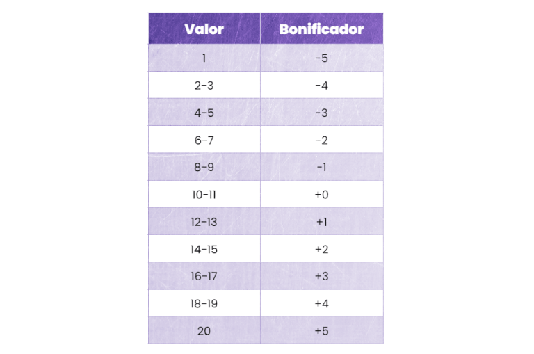 Las reglas de juego ya nos traen una tabla que determina qué bonificador corresponde a cada valor. Esta es la tabla, simplemente tienes que buscar el valor y poner el bonificador que corresponde.